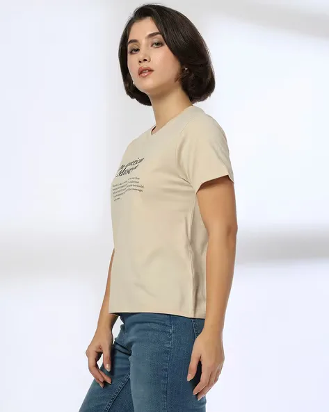 Women Graphic Print Boxy Fit Cotton Round-Neck T-Shirt
