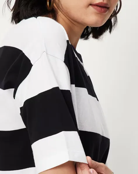 Women Striped Relaxed Fit Crew-Neck T-Shirt