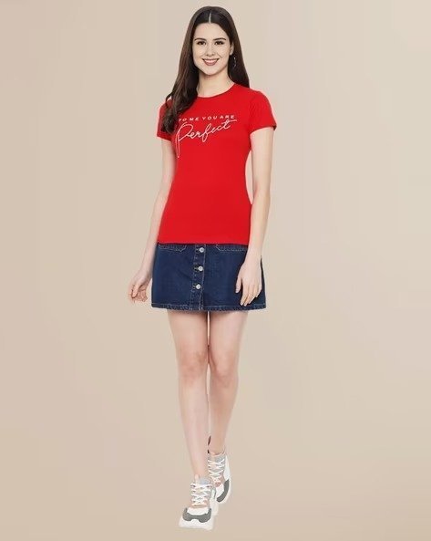 Women Typographic Print Regular Fit T-Shirt